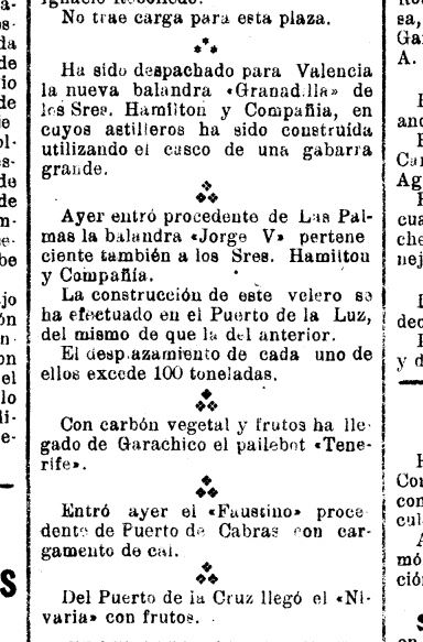 aparejadas también como balandras. Se denominarían “Granadilla” y “Jorge V”,
